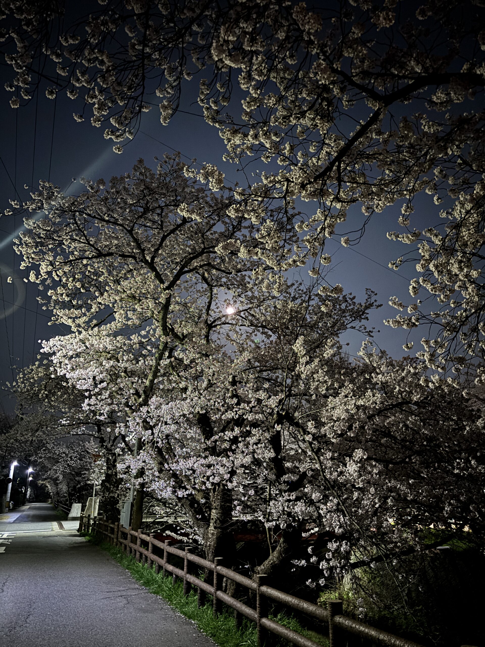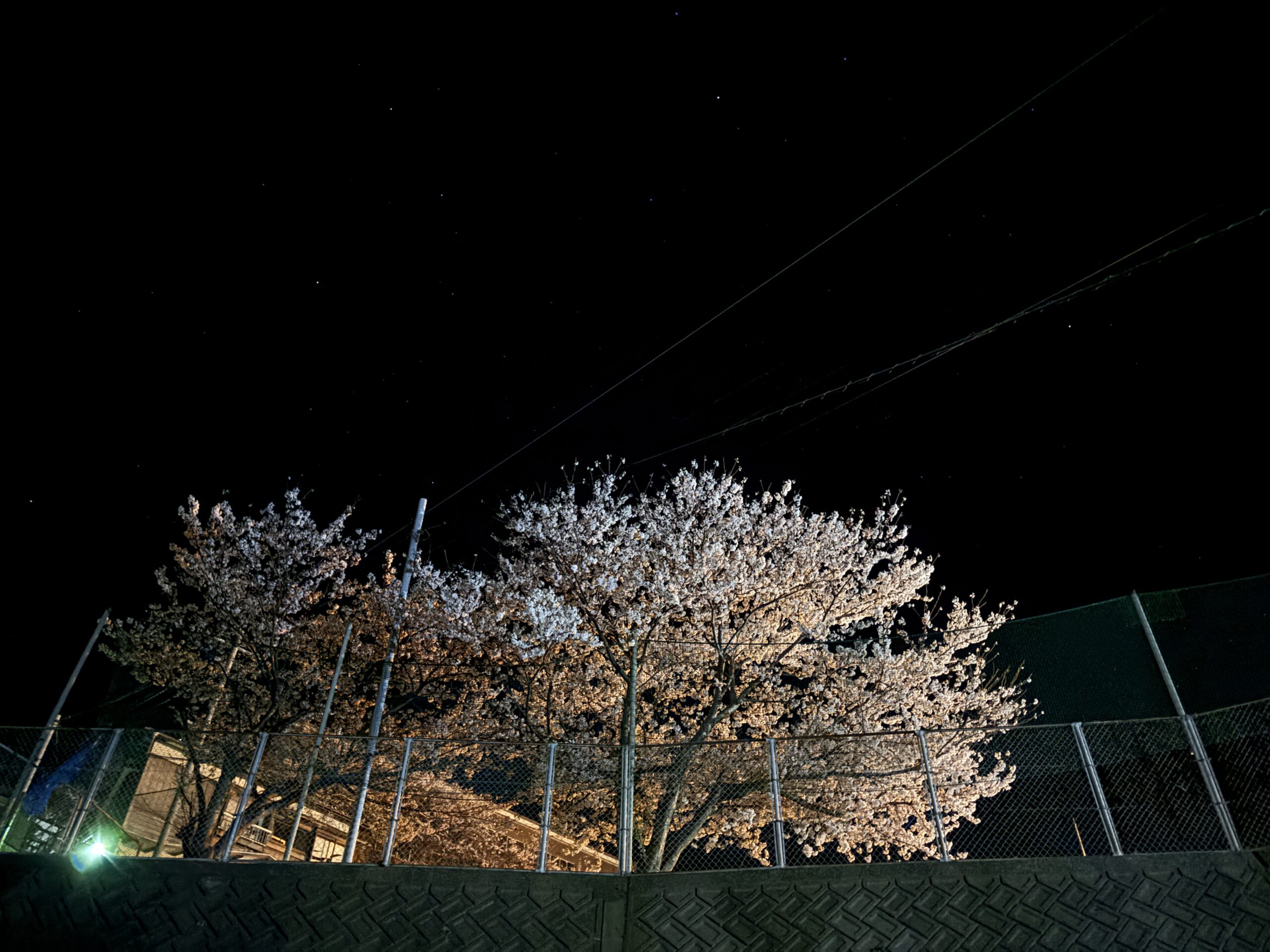この写真は、今日(2026年4月8日)星空をバックに写した夜桜です。昼間は20度を超える日もありますが、夜はまだ冷えます。咲き始めて1週間以上となり、先日の暴風に耐えたあとで、そろそろ散り始めた桜です。
